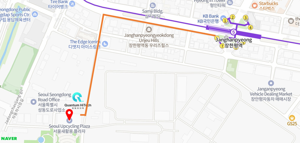 - Subway: Line 5, Janghanpyeong Station, Exit 8